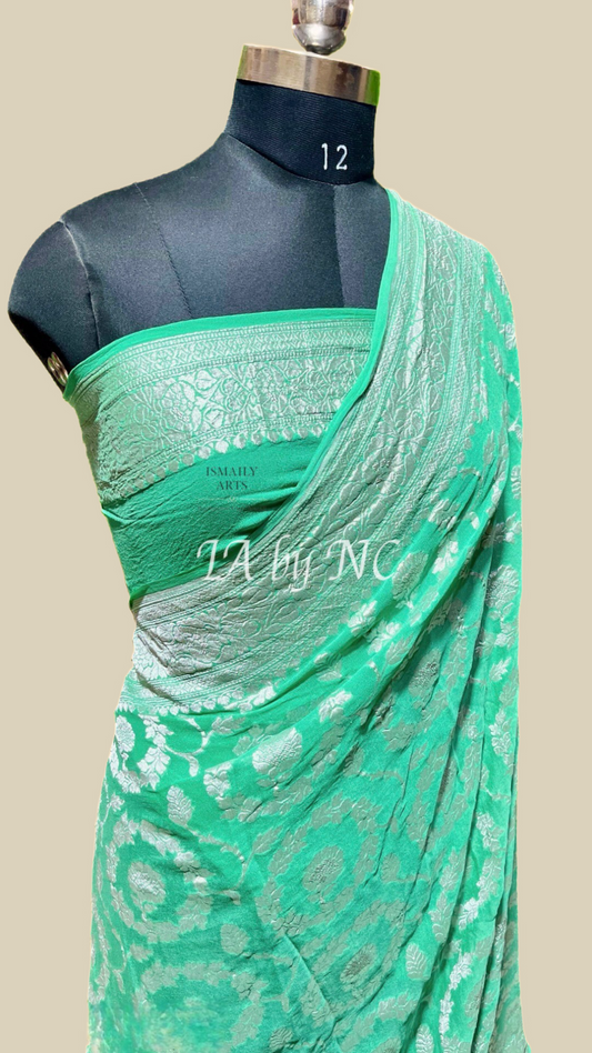 Mint Banarasi Pure Khaddi Georgette Saree