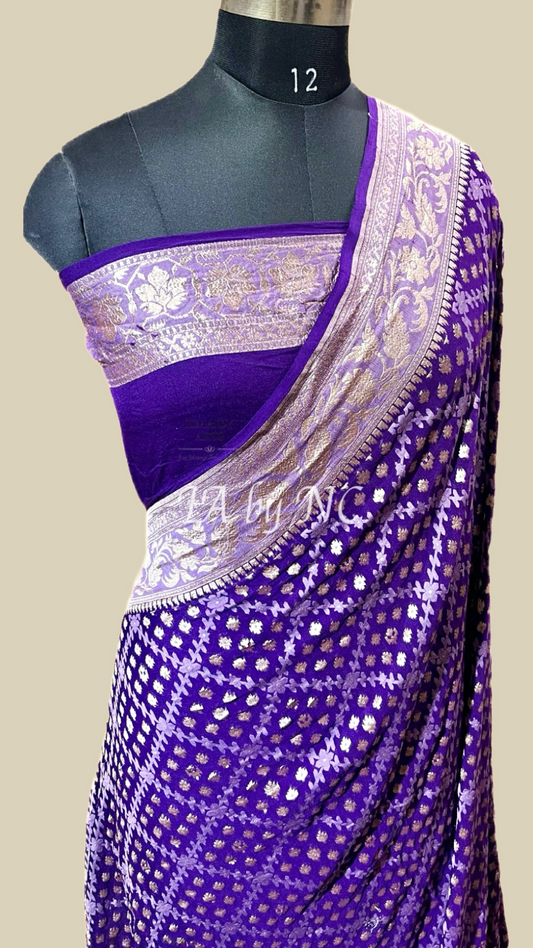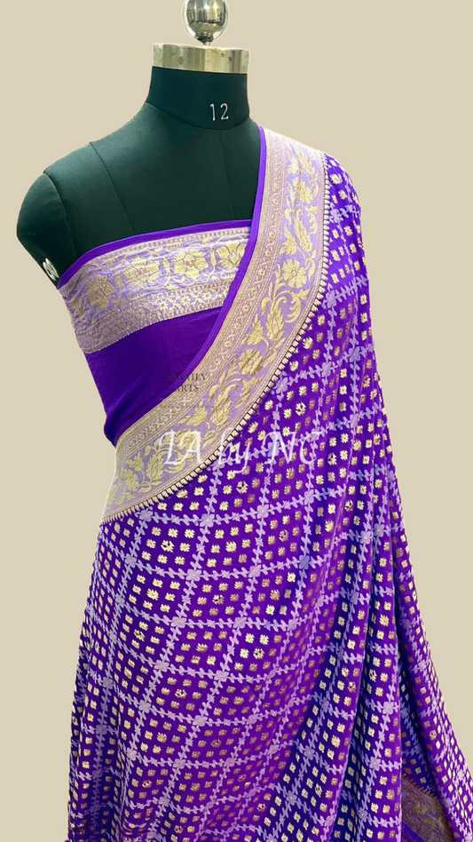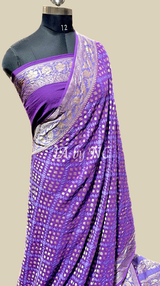 Grape Banarasi Pure Khaddi Georgette Saree