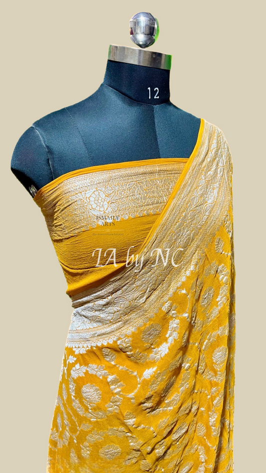 Goldenrod Banarasi Pure Khaddi Georgette Saree