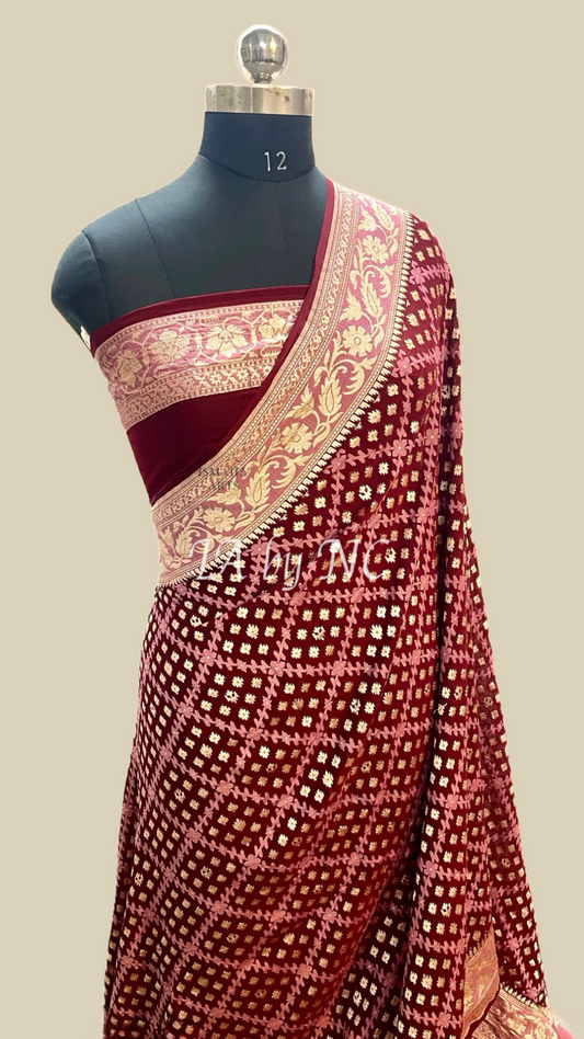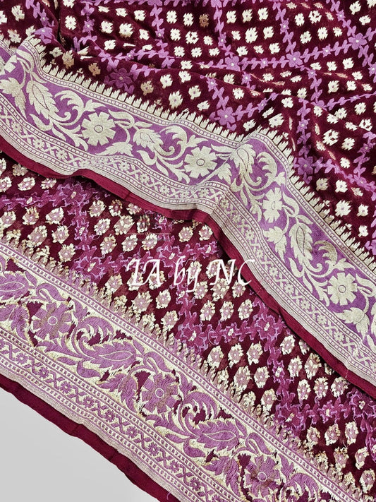 Maroon Banarasi Pure Khaddi Georgette Saree