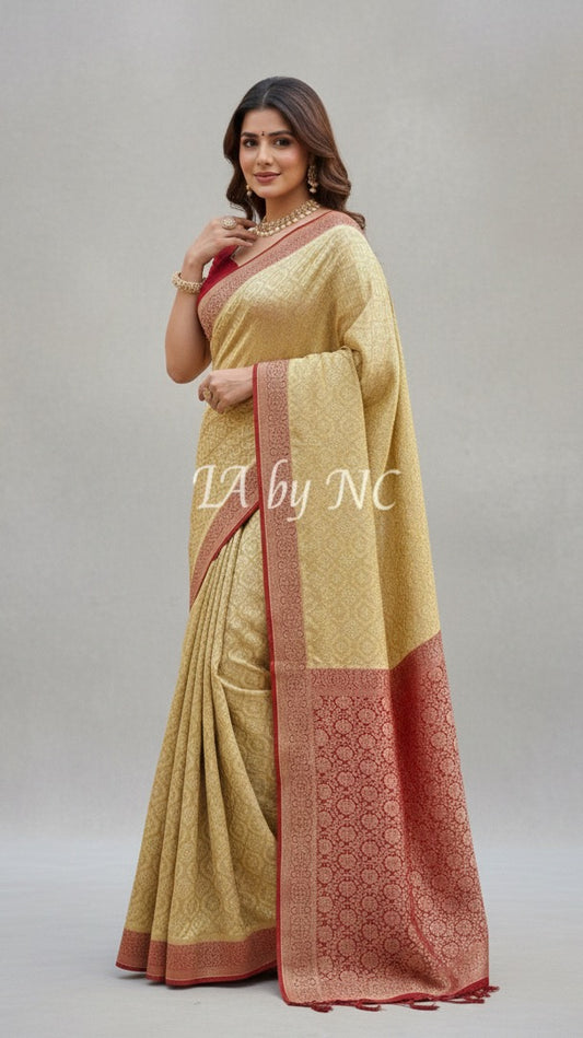 Eggnog Banarasi Pure Khaddi Georgette Saree