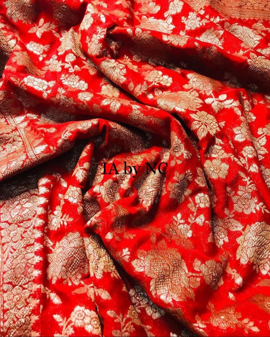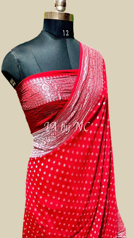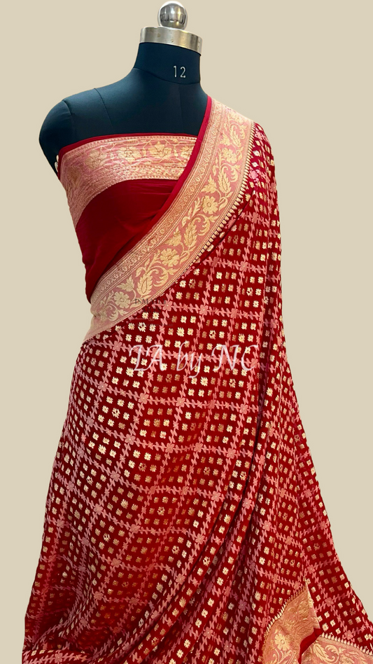 Crimson Banarasi Pure Khaddi Georgette Saree