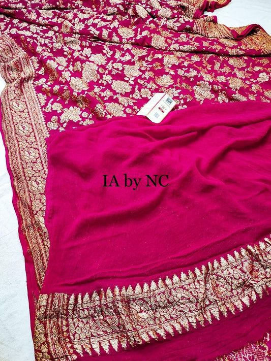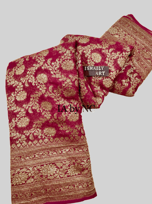 Cerise Banarasi Pure Khaddi Georgette Saree