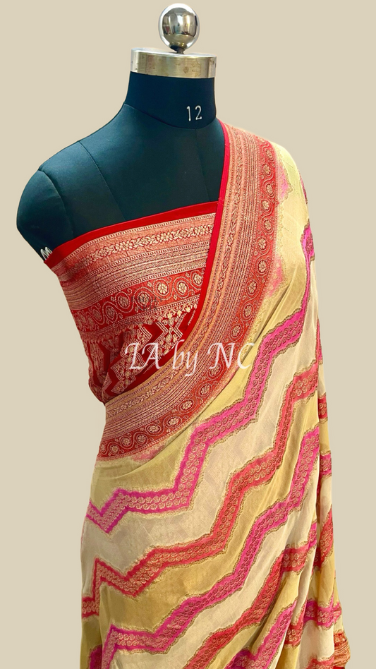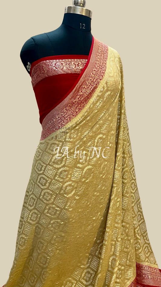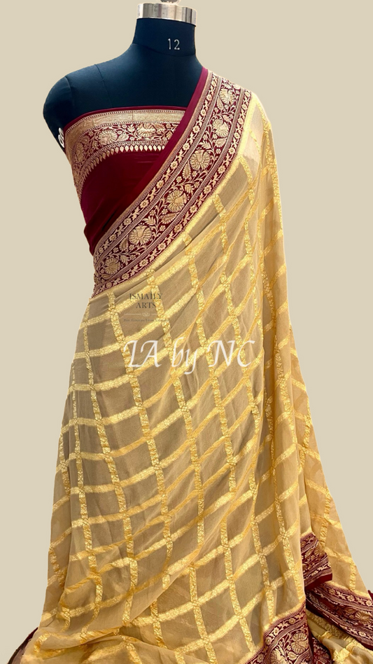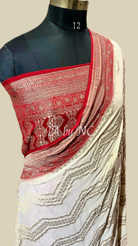 Eggnog Banarasi Pure Khaddi Georgette Saree