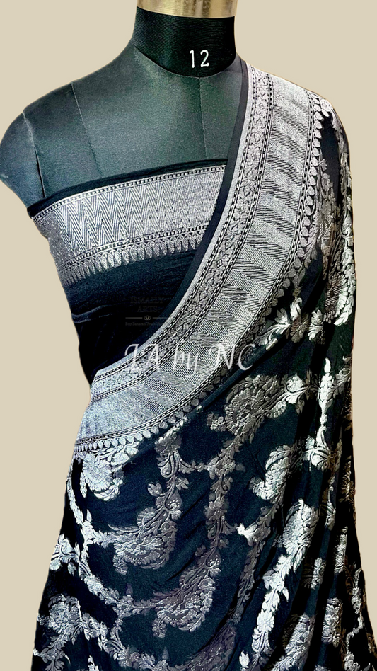 Black Banarasi Pure Khaddi Georgette Saree