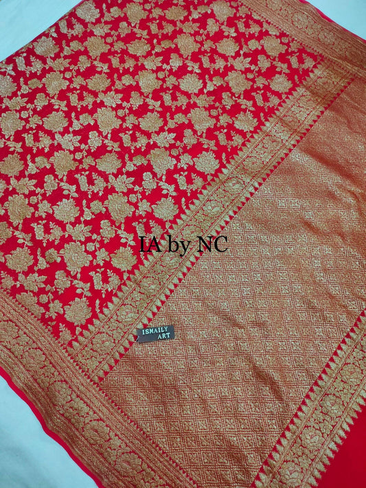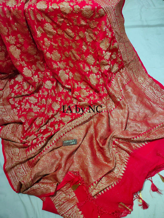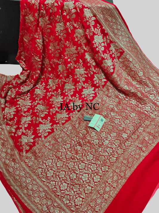 Crimson Banarasi Pure Khaddi Georgette Sarees