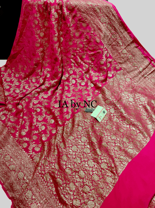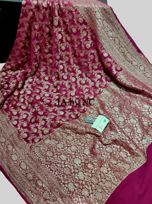 Cerise Banarasi Pure Khaddi Georgette Saree