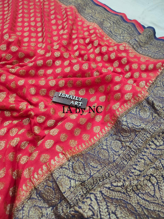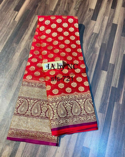 Chilli Banarasi Pure Khaddi Georgette Saree