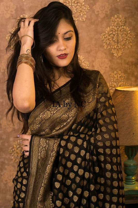 Bumblebee Banarasi Pure Khaddi Georgette Saree