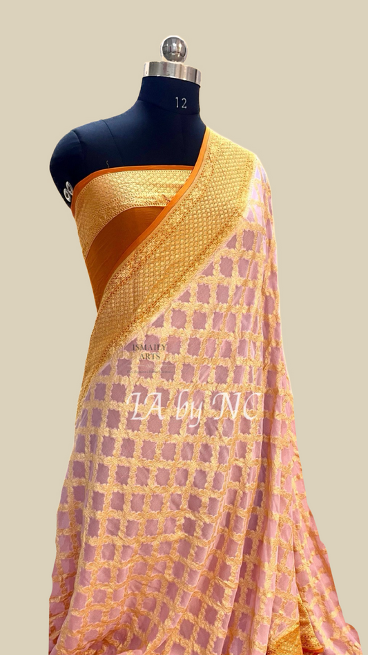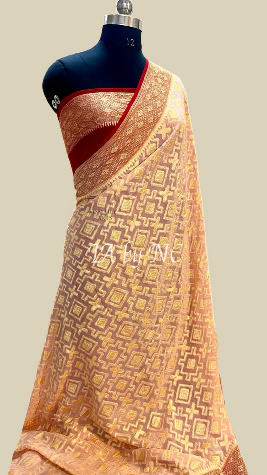 Apricot Banarasi Pure Khaddi Georgette Saree