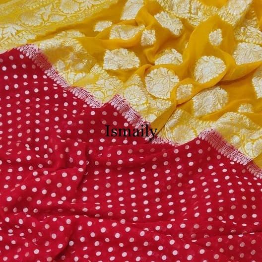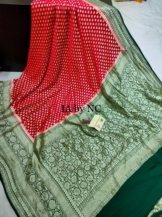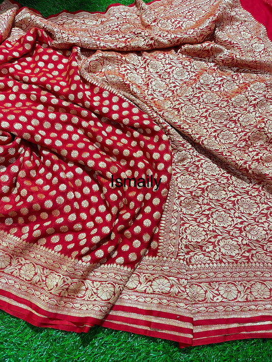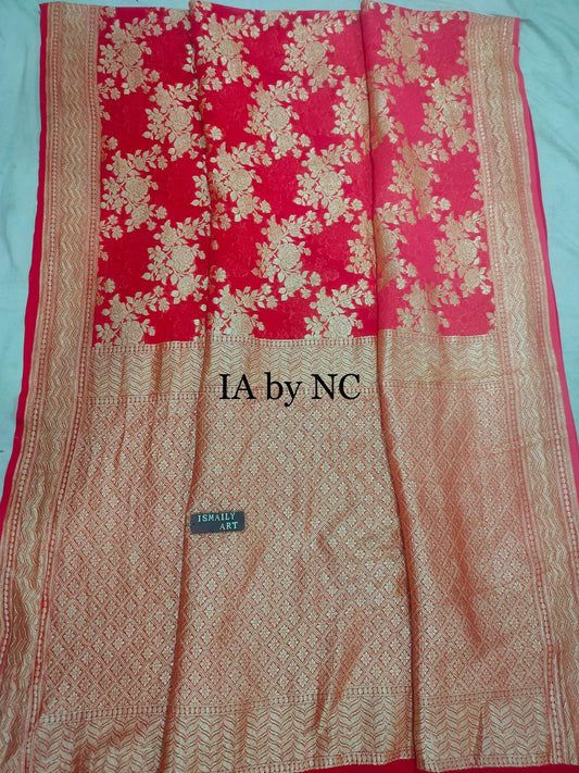 Carmine Banarasi Pure Khaddi Georgette Saree