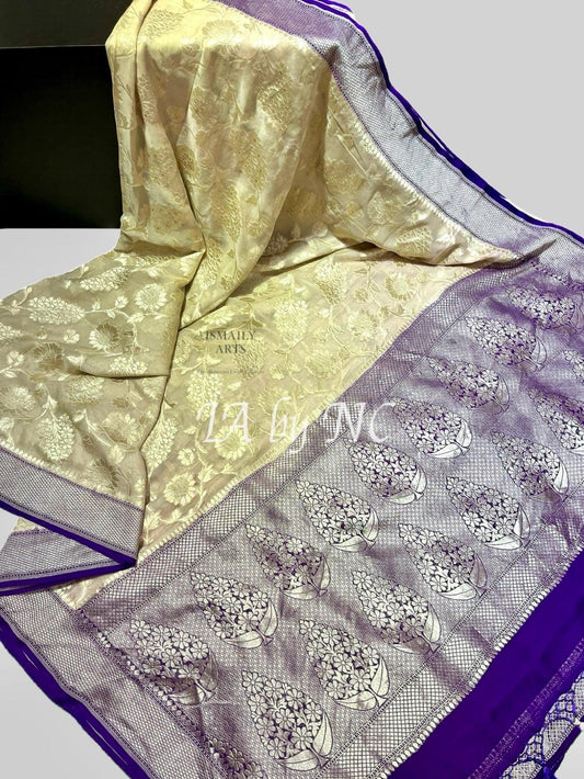 French Banarasi Pure Katan Silk Raw Mango Saree