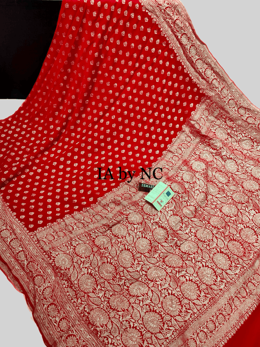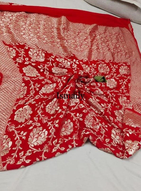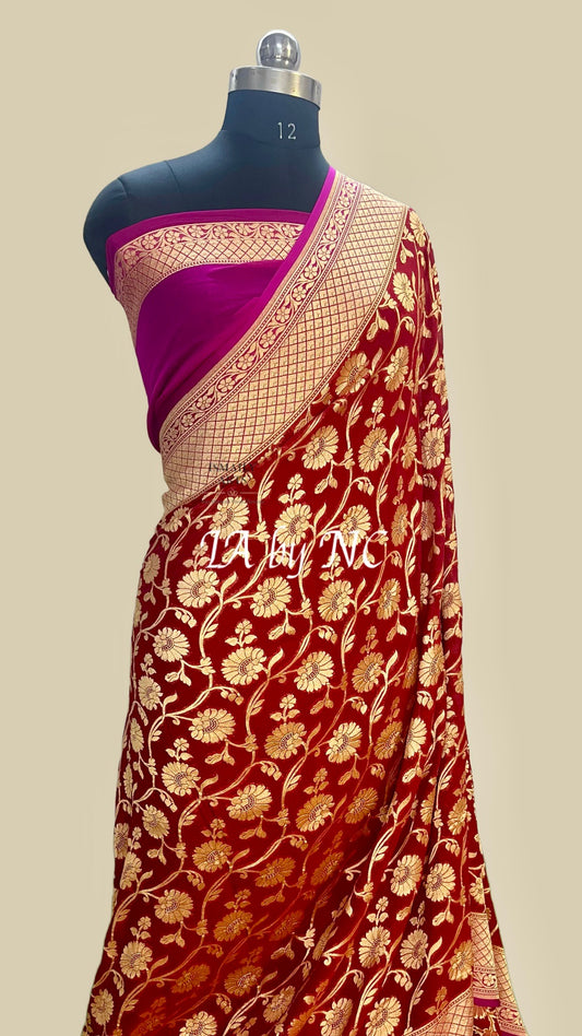 Crimson Banarasi Pure Khaddi Georgette Saree
