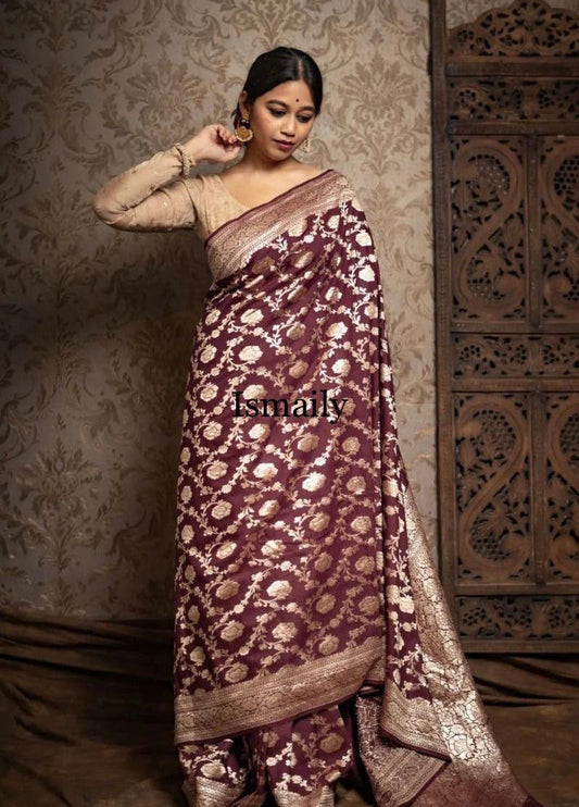 Brown Banarasi Pure Khaddi Georgette Saree.