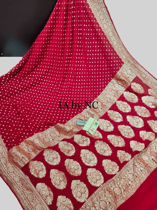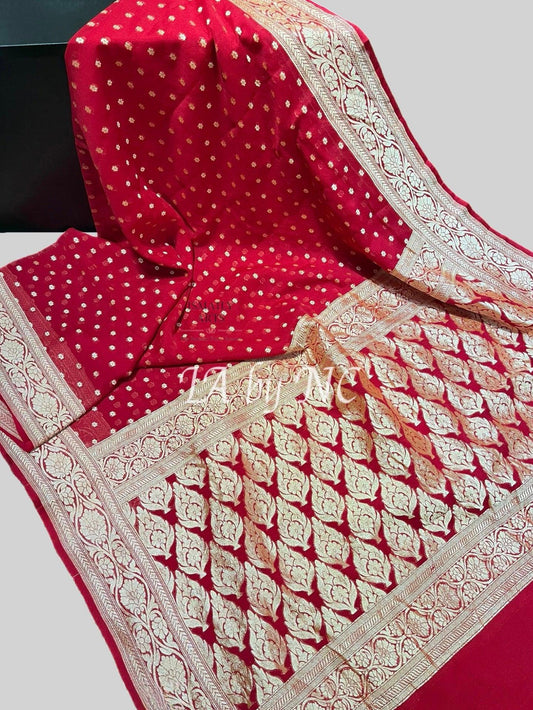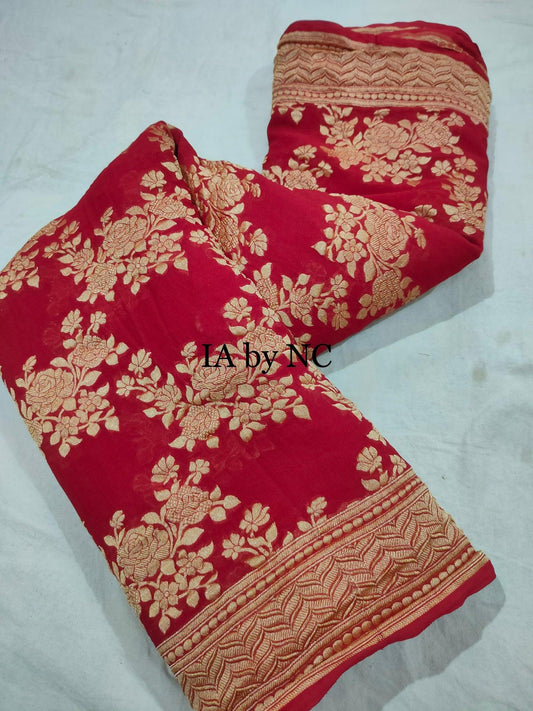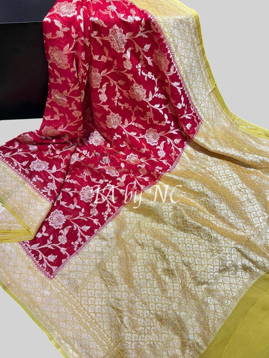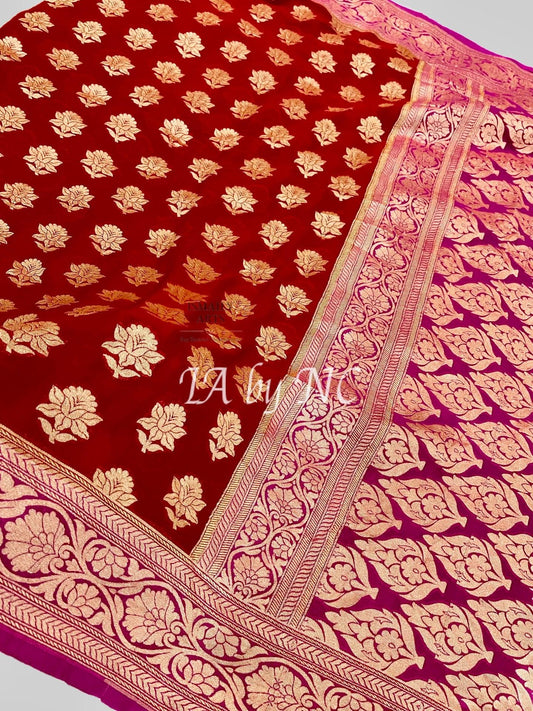 Carmine Banarasi Pure Khaddi Georgette Saree