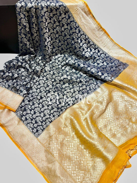 French Banarasi Pure Katan Silk Raw Mango Saree