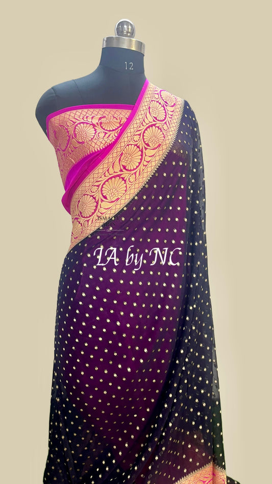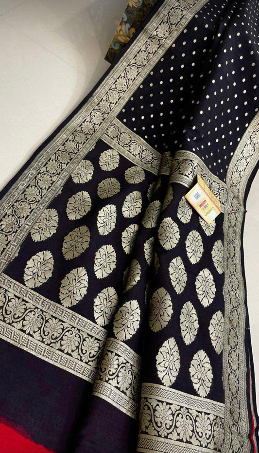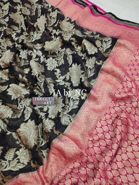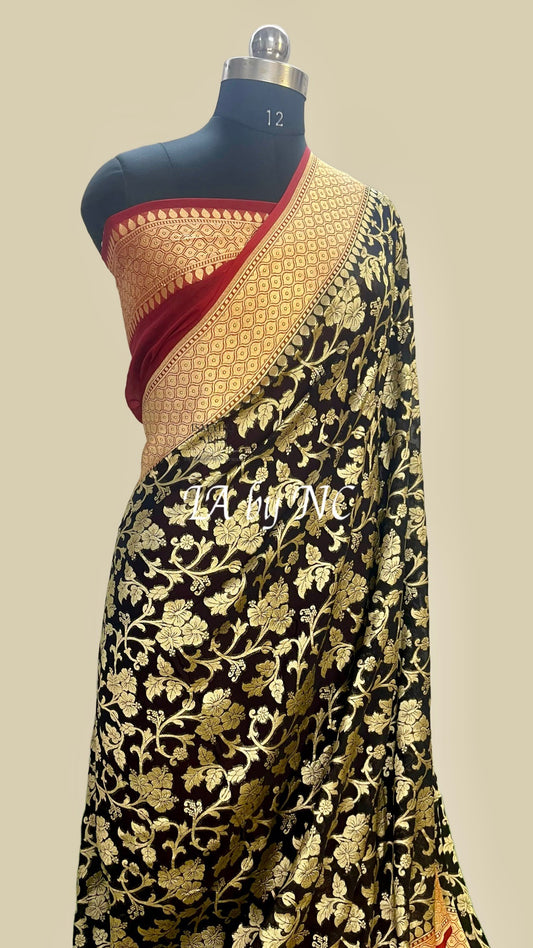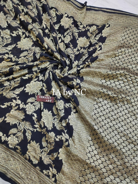 Black Banarasi Pure Khaddi Georgette Saree