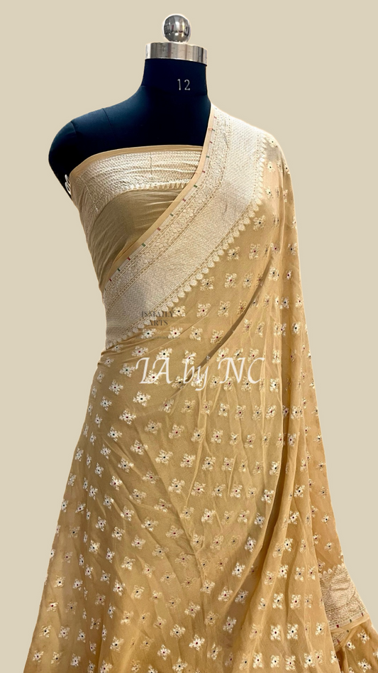 Beige Banarasi Pure Khaddi Georgette Saree