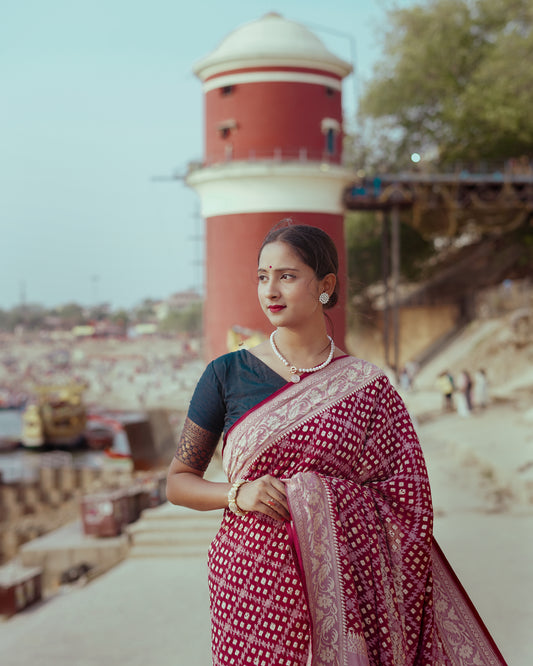 Burgundy Banarasi Pure Khaddi Georgette Saree