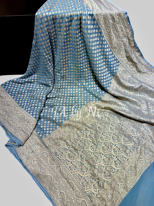 Blue Banarasi Pure Khaddi Georgette Saree