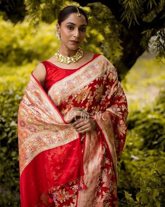 Carmine Banarasi Pure Katan Silk Tilfi Meenakari Rangkat Saree