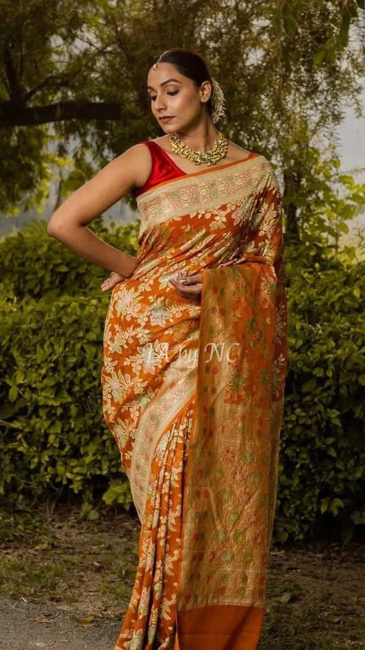 French Banarasi Pure Katan Silk Raw Mango Saree