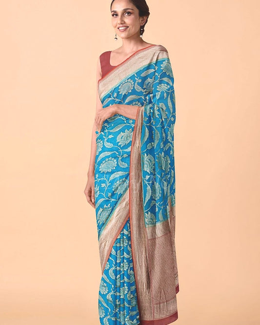 Turquoise Banarasi Pure Khaddi Georgette Saree