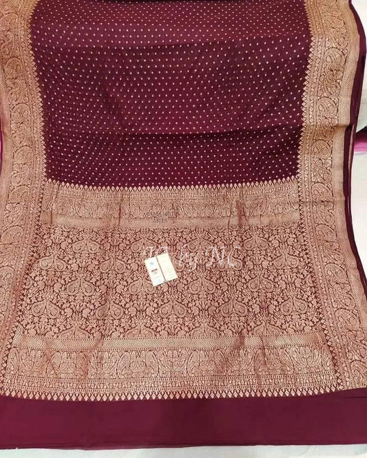 Burgundy Banarasi Pure Khaddi Georgette Saree