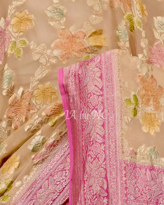 Beige Banarasi Pure Khaddi Georgette Saree