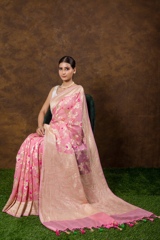 French Banarasi Pure Khaddi Georgette Meenakari Saree