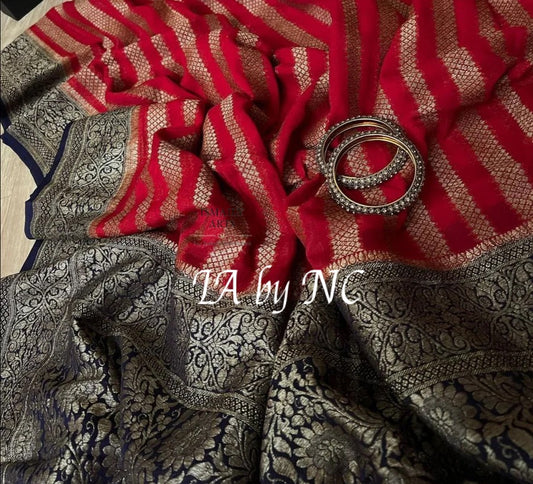 Scarlet Banarasi Pure Khaddi Georgette Saree