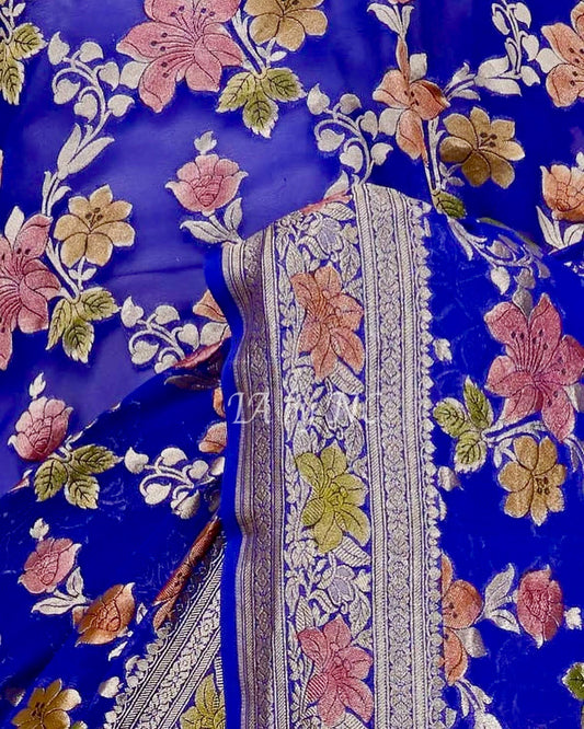 Azure Banarasi Pure Khaddi Georgette Meenakari Saree