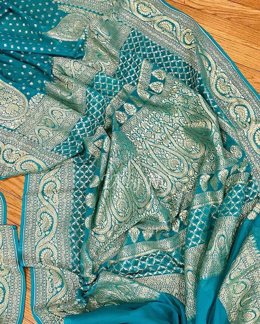 Teal Banarasi Pure Khaddi Georgette Saree