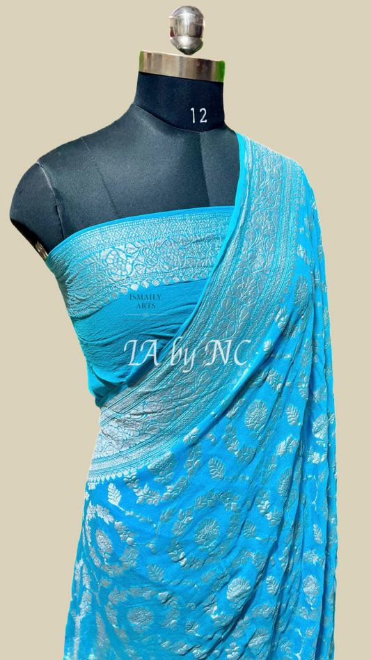 Teal Banarasi Pure Khaddi Georgette Saree