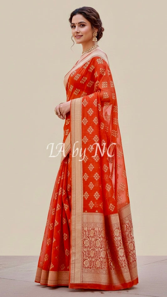 Tangerine Banarasi Pure Khaddi Georgette Saree