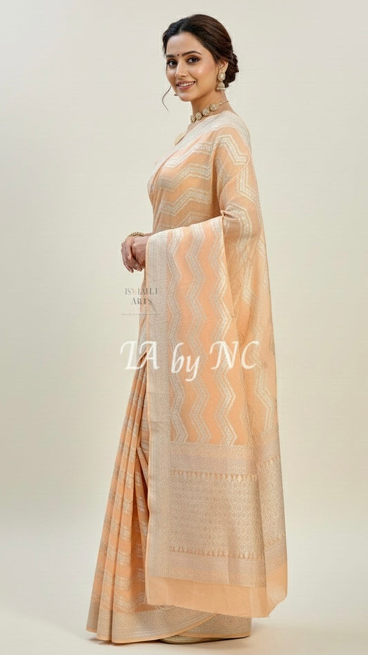 Salmon Banarasi Pure Khaddi Georgette Saree