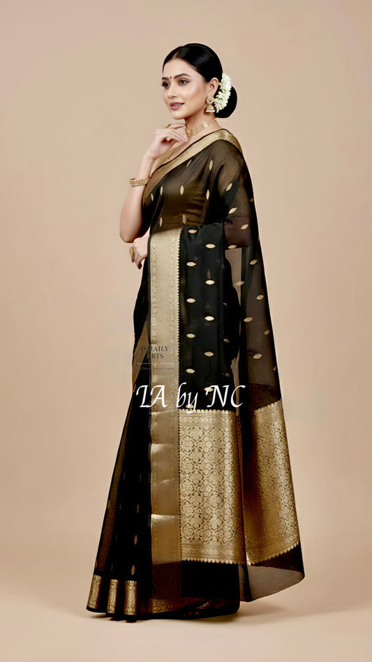 Black Banarasi Pure Kora Silk Kadwa Saree