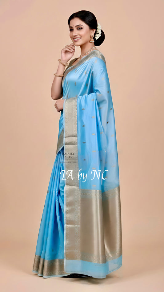 Sky Banarasi Pure Kora Silk Kadwa Saree