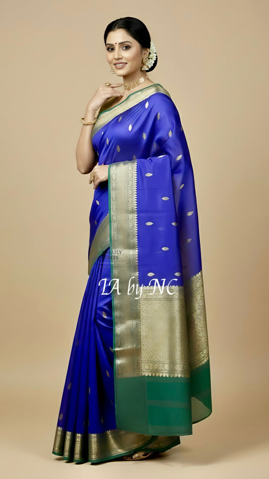 Indigo Banarasi Pure Kora Silk Kadwa Saree