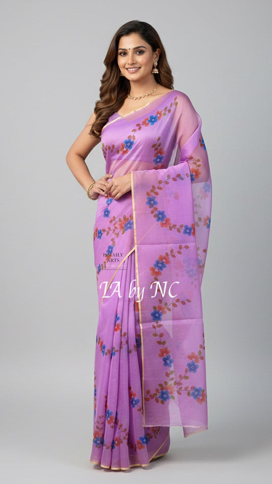 Kora is a comfortable ,light weight and gossamer fabric woven using pure organza silk yarns. It is a thin sheer fabric made of a plain weave and the word Organza is derived from the word “Organzine” which denotes a material made from strong silk yarns that are twisted into strands.