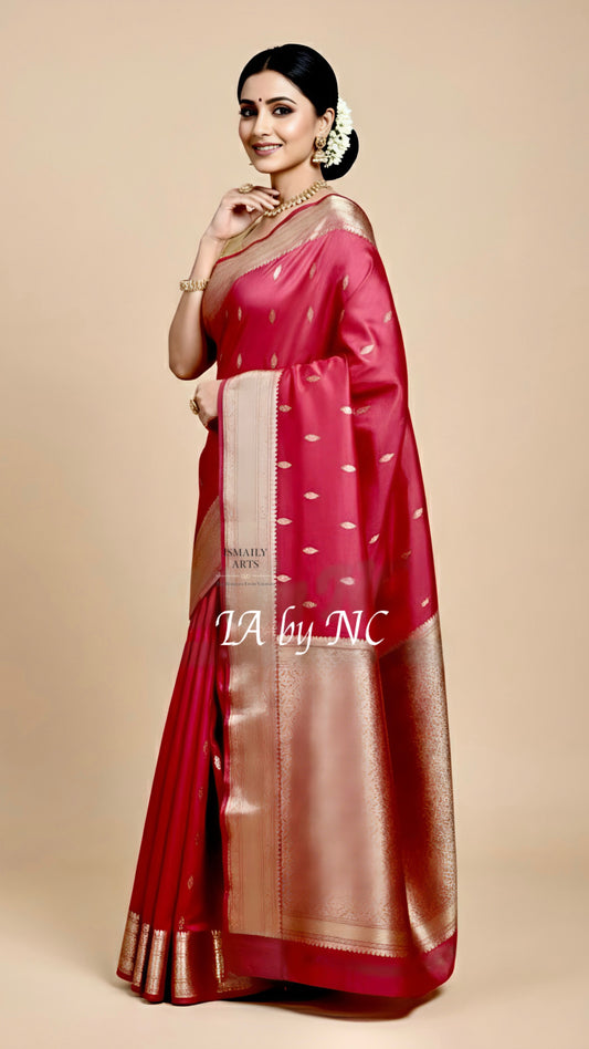 Carmine Banarasi Pure Kora Silk Kadwa Saree