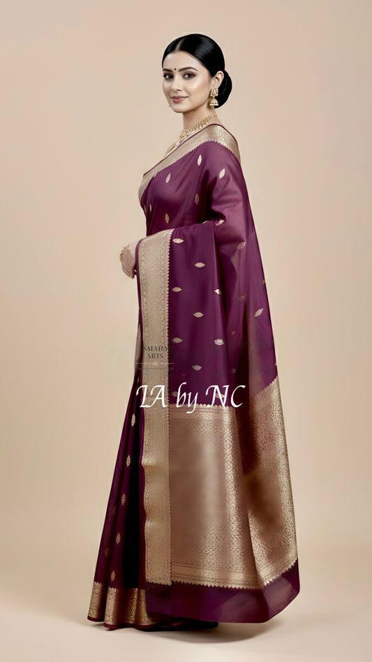 Mulberry Banarasi Pure Kora Silk Kadwa Saree