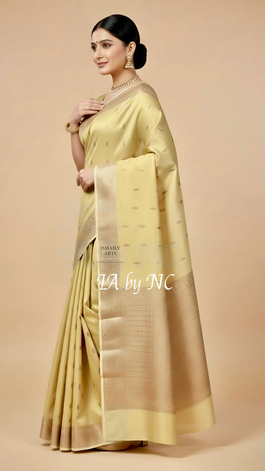 Eggnog Banarasi Pure Kora Silk Kadwa Saree