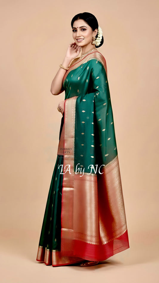 Avocado Banarasi Pure Katan Silk Raw Mango Saree