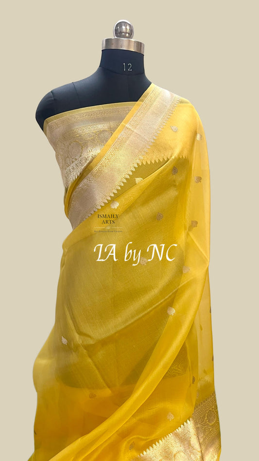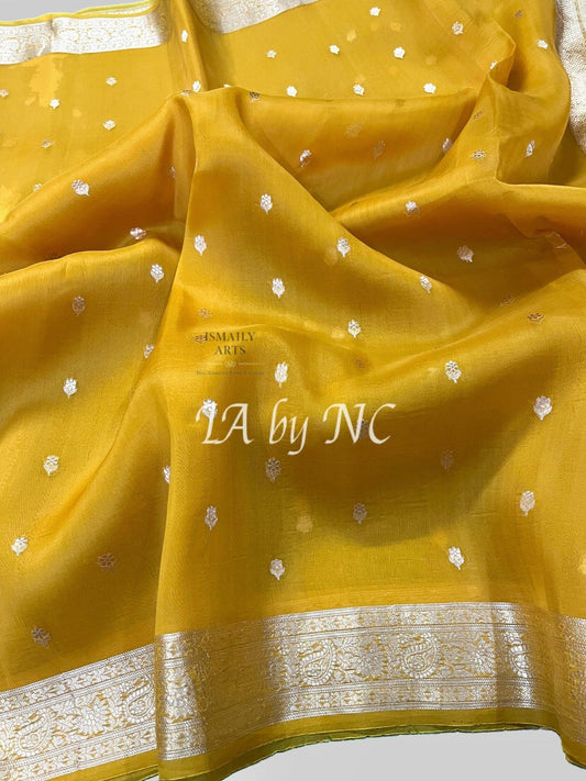 Gold Banarasi Pure Kora Organza Kadwa Saree