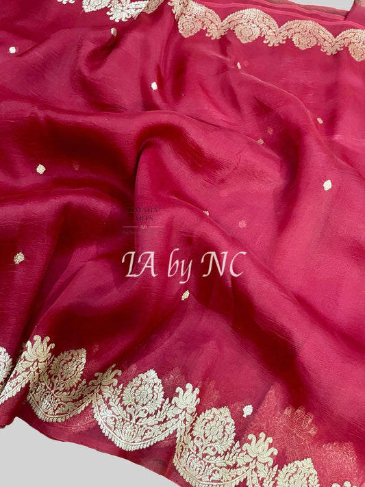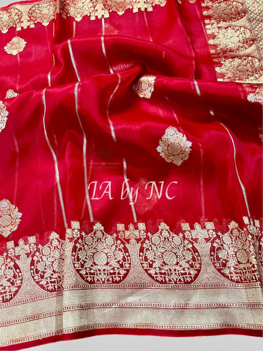 Crimson Banarasi Pure Kora Organza Kadwa Saree