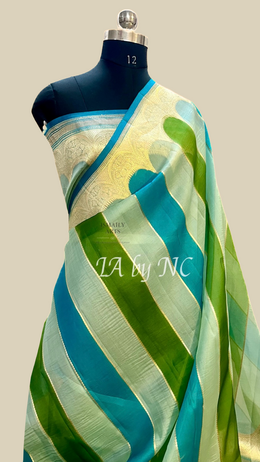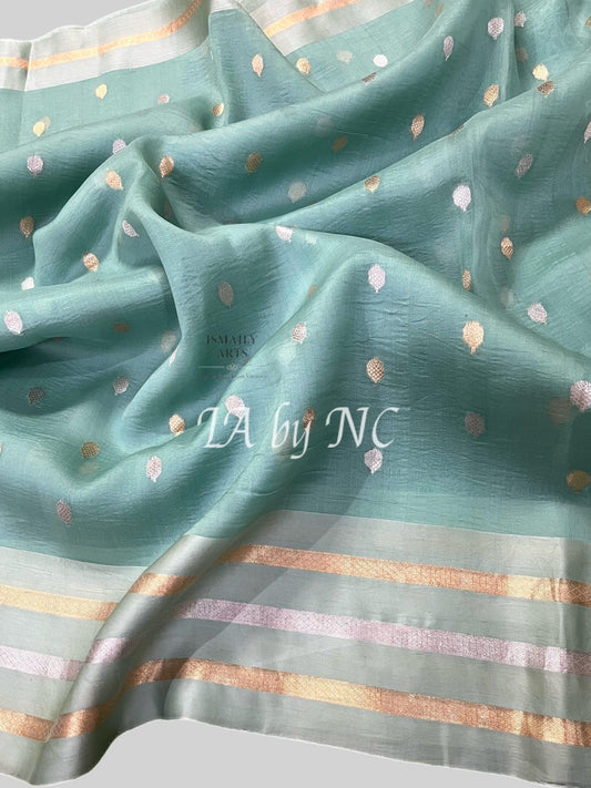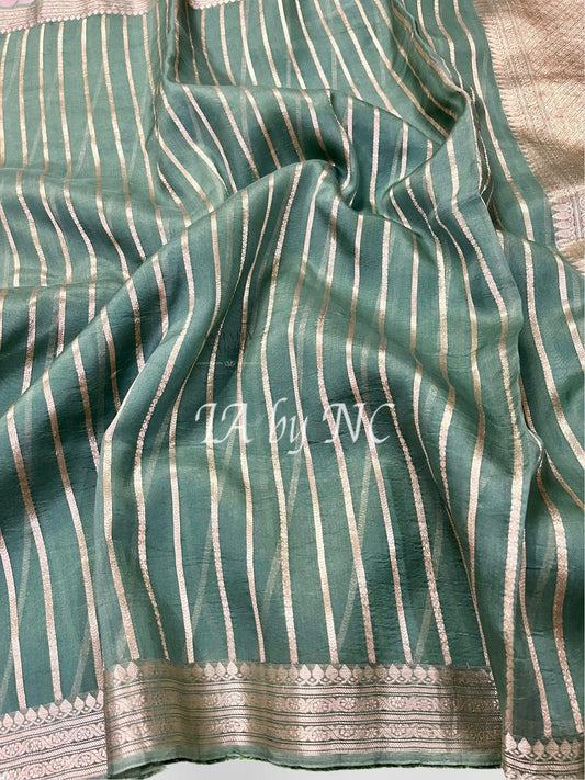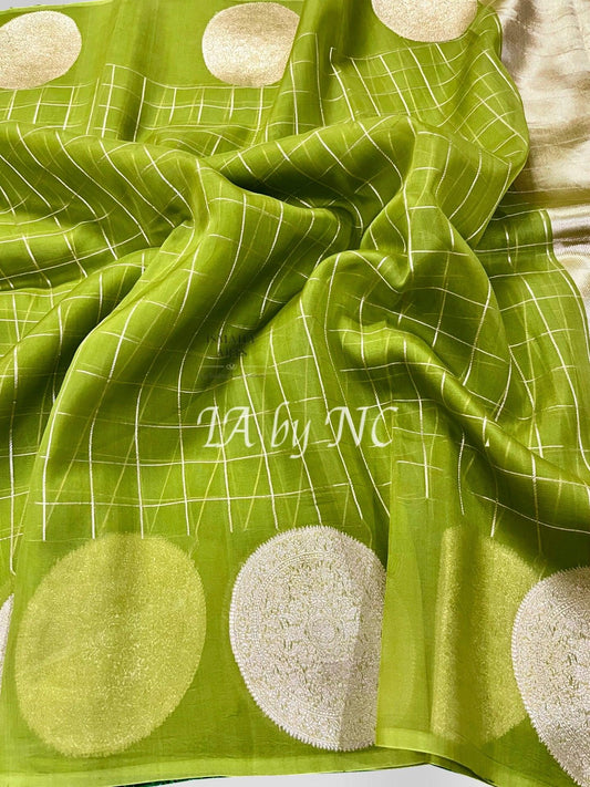 Moss Banarasi Pure Kora Organza Kadwa Saree