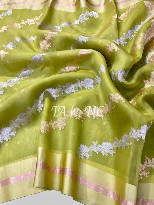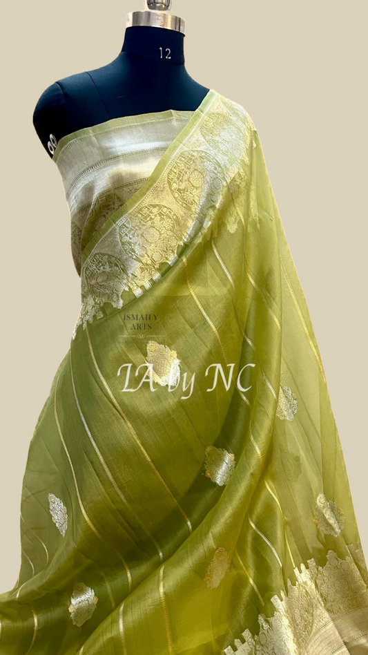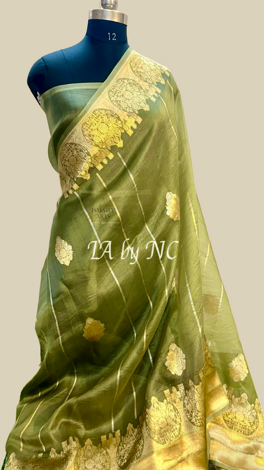 Olive Banarasi Pure Kora Organza Kadwa Saree