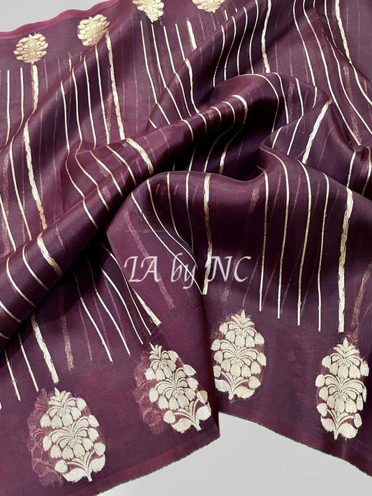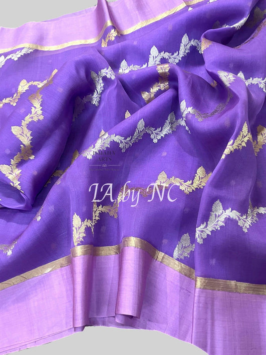 Grape Banarasi Pure Kora Organza Kadwa Saree