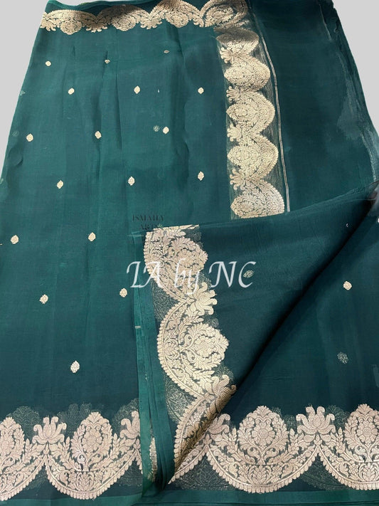 Avocado Banarasi Pure Katan Silk Raw Mango Saree